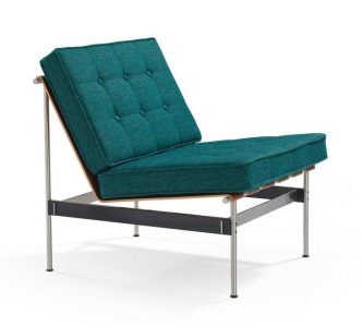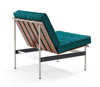 The minimalist frame of the 416 series consists of a careful balance between brushed stainless steel and black coated metal elements, finished with slats made from Santos rosewood. The padded seat cushion provides maximum comfort.