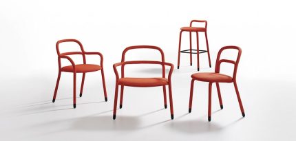 Designed by Roberto Paoli, the new Pippi collection by Midj includes chairs, armchairs, and lounge chairs with armrests and two