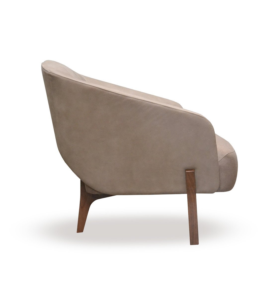 Materials:  Armchair with American walnut legs. Upholstered seat and back.  Polyurethane foam padding.  Felt glides.